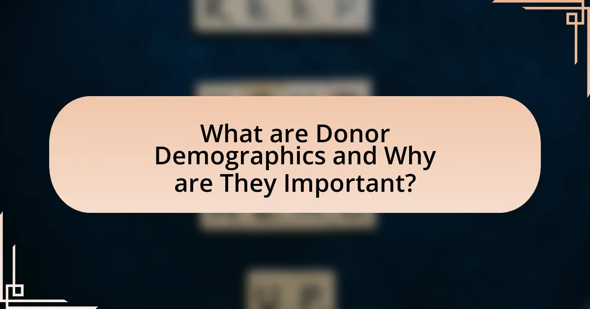Donor demographics refer to the statistical characteristics of individuals who contribute to charitable organizations, including age, gender, income level, education, and geographic location. Understanding donor demographics is crucial because it enables organizations to tailor their fundraising campaigns to effectively engage specific segments of the population, thereby increasing the likelihood of donations. For instance, research indicates that targeted campaigns based on demographic insights can lead to a 20-30% increase in fundraising effectiveness, as they resonate more with the intended audience’s values and preferences.